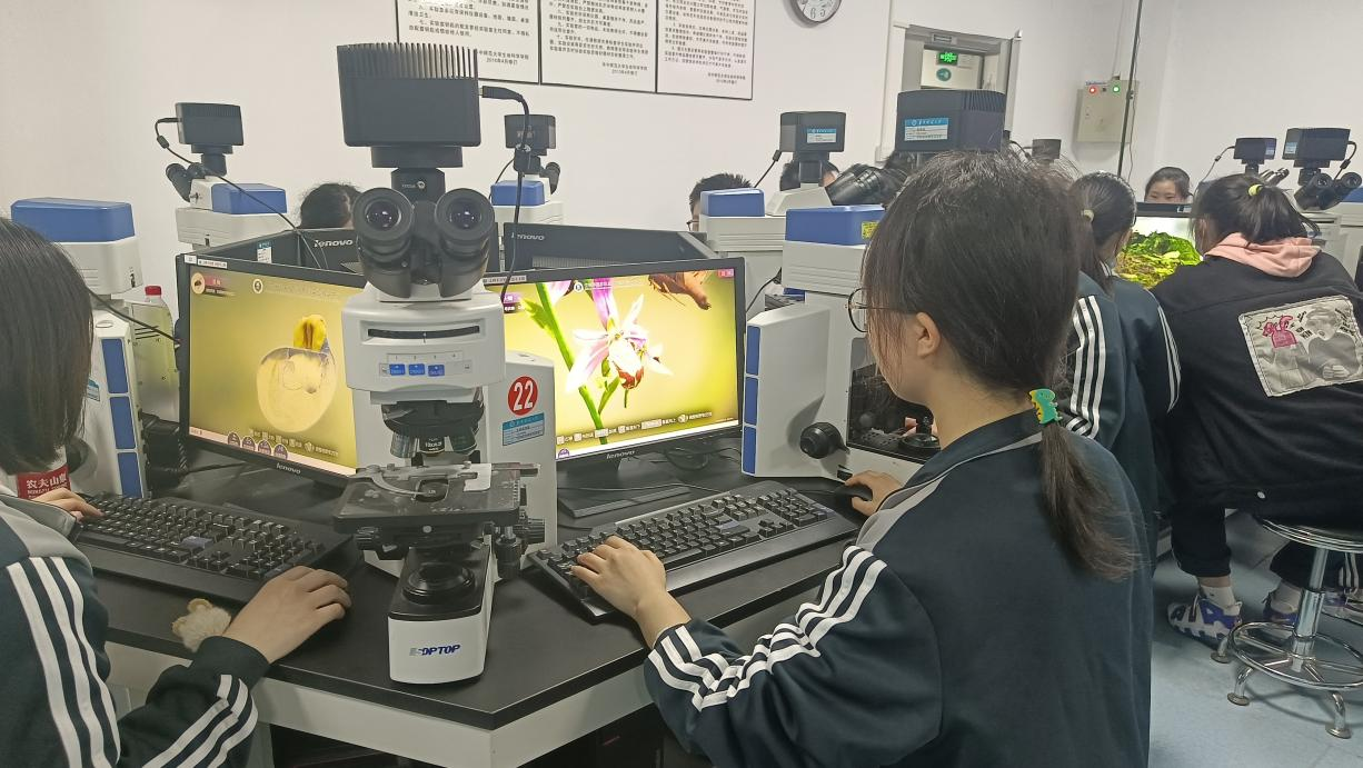 在了解了华师学子的基本学习生活之后,我们来到了生命科学学院虚拟仿真实验教学中心体验学习。在实验室中,学生们体验了兰科植物和川金丝猴两项特色虚拟实验。在老师的指导下,学生们利用电脑和VR设备动手体验了兰科植物真实的传粉过程,并且更清晰地观察了金丝猴的齿式和头骨结构等,学生说道:“之前从来没有体验过,虚拟仿真平台太神奇了!”