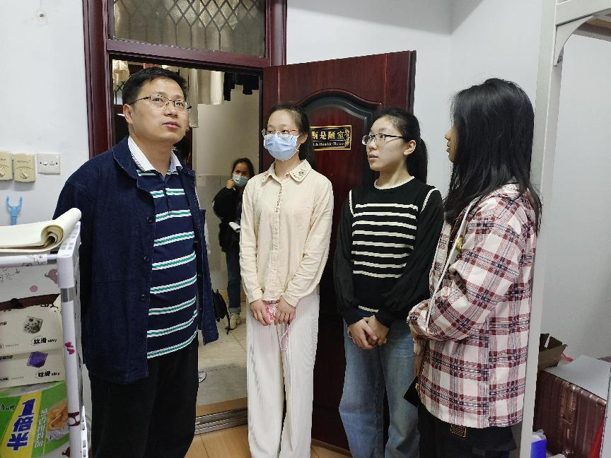 在宿舍走访过程中,老师们仔细了解同学们的生活起居环境,并对同学们的睡觉饮食情况进行询问与关心,提醒同学们在生活中遇到困难要及时向老师或身边同学求助。