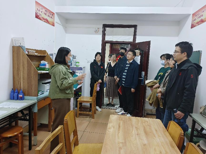 4月2日17:00,在东二社区辅导员陈陈瑾的带领下,我院2022级辅导员余璇陪同班主任赵仁鑫、杨勇波、邓淑文、朱曼璐、汪家林、李军、黄运远等7位老师,与由各班生活委员组成的评分团一同参观社区活动室,由22级学生会主席李晴晨同学讲解宿舍卫生评比的评分要点及相关安排。