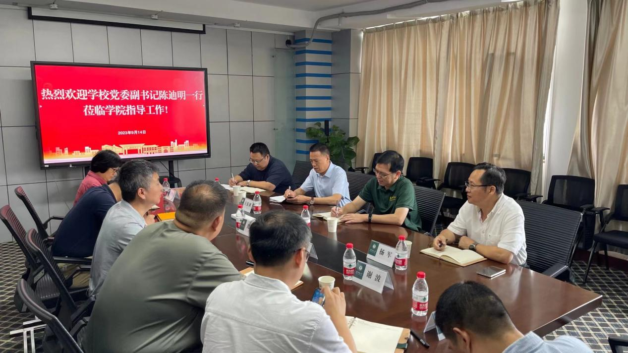 华大生科讯(通讯员:邓淑文)9月14日上午,校党委副书记陈迪明带队赴我院开展新学期开学检查并进行调研指导。一同来学院调研的有党委学生工作部副部长、事务处处长杨军,保卫处处长王东爽,学校办公室杨朝清老师等。学院党委书记郑宁、院长邱保胜和学院领导班子成员参加调研会议。会议由郑宁主持。