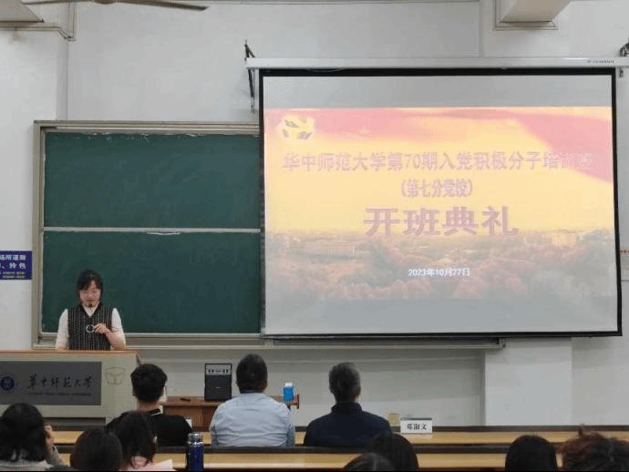 华大生科讯(通讯员:匡心怡)10月27日晚6:30,由生命科学学院、城市与环境科学学院组成的第70期学生入党积极分子集中培训班第七分党校开班典礼于9301教室准时召开,本期培训班由生命科学学院主办。出席本次开班典礼的领导和老师有生科院党委书记郑宁、城环学院党委书记吴成峡、城环学院带队老师李澳和生科院党委办公室主任邓淑文,开班典礼由本期培训班班主任邓淑文主持。