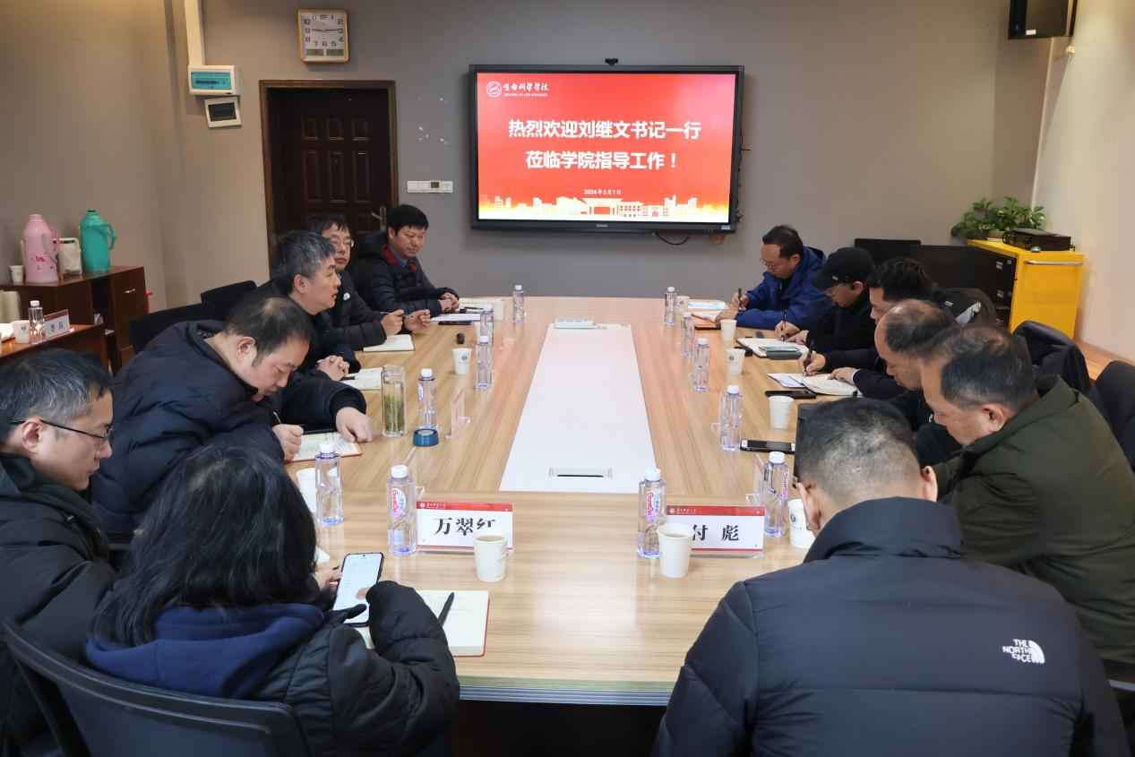 华大生科讯 3月1日上午,校党委副书记、纪委书记刘继文一行莅临生命科学学院指导检查开学工作。校纪委副书记寇富安、校团委书记苏晓刚、图书馆(博物馆)馆长刘宝卿、档案馆馆长付强等陪同参加。学院党政领导班子全体成员参加。