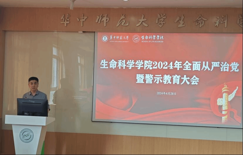 华大生科讯(通讯员:刘琴/摄影:刘琴)4月28日下午,生命科学学院在5号楼301报告厅召开2024年全面从严治党暨警示教育大会。院党委委员、师生党支部支委参加会议。院党委书记郑宁主持会议。
