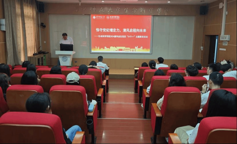 华大生科讯(通讯员 刘琴)为深入学习贯彻习近平新时代中国特色社会主义思想,推动党纪学习教育走深走实,进一步引导毕业生党员坚定理想信念,扣好廉洁从业的第一粒扣子,在新的人生阶段勇担使命责任,贡献青春力量,6月5日上午,生命科学学院面向2024届毕业生党员开展了“六个一”主题教育活动。院党委书记郑宁、毕业生辅导员杨春燕、赵耀、党务干事刘琴出席,院党委副书记姚珂主持此次活动。