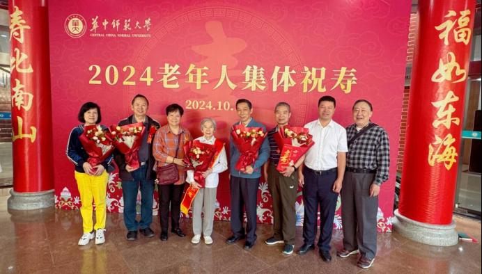 华大生科讯(通讯员 高瑶) 秋风送爽,丹桂飘香,又是一年重阳至。10月11日,华中师范大学2024年老年人集体祝寿大会在科学会堂一楼报告厅举行,我校130余名寿星代表齐聚一堂,共度重阳。校党委书记夏立新,校党委副书记查道林、副校长任友洲、李鸿飞,校党委副书记、纪委书记刘继文,副校长刘宏达、刘三女牙出席,各学院(学部)主要负责人、离退休工作联系人,各涉老组织负责同志和学生代表参加大会。大会由查道林主持。