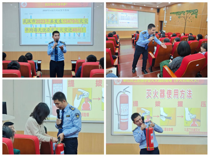 华大生科讯(通讯员 刘雨桐)为深入学习贯彻党的二十届三中全会精神,深入贯彻落实习近平总书记关于安全生产重要指示批示精神,进一步加强我院教职工消防安全意识,提高秋冬季节的防火、应急自救能力,普及消防安全知识,确保校园安全稳定,11月8日下午,我院邀请了武汉市利民消防技术服务中心的王伟明教官面向全体教职工,开展了以“全民消防,生命至上”为主题的消防安全培训。