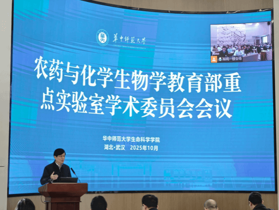 华大生科讯(通讯员 郭家源)2025年10月24日,农药与化学生物学教育部重点实验室(待更名“分子调控与生物合成”)学术委员会会议在华中师范大学桂苑宾馆一楼报告厅成功召开。华中师范大学副校长李鸿飞,武汉大学医学研究院舒红兵院士,上海海洋大学校长胡炜,中国科学院分子植物科学卓越创新中心张余教授,深圳市转化医学研究院陈实教授,上海交通大学杨琛教授,华中师范大学科技处处长张本威,华中师范大学绿色农药全国重点实验室杨光富教授,生命科学学院党委书记邱保胜、院长徐旭东、闵金荣教授,嘉必优生物技术有限公司、华中师范大学产业教授陆姝欢出席会议,中国农业科学院深圳农业基因组研究组戴俊彪研究员、清华大学潘俊敏教授、华南师范大学唐晓艳教授线上参会,重点实验室各课题组老师和研究生参加会议。开幕式由实验室主任徐旭东教授主持。