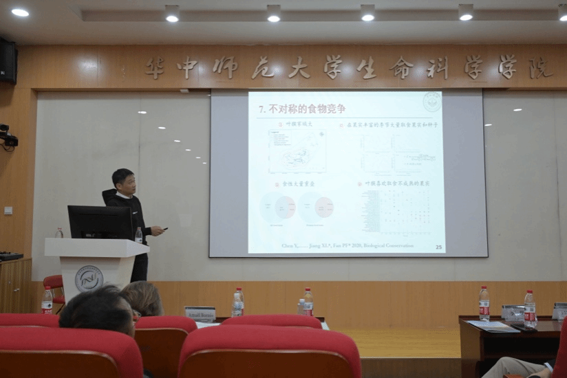 2025年10月23日至25日,华中师范大学生命科学学院在5号楼5301会议室成功举办了“生物多样性与城市生态健康学术研讨会”。会议邀请生态学领域研究生物多样性维持、全球气候变化、植物群落、动物行为等方向的专家,系统展示该领域的最新进展与未来发展趋势,推动学术交流合作。本次会议特邀6名专家分享最新研究成果,吸引近百位学者学子前来交流探讨。