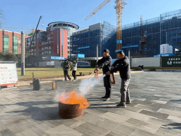 疏散演练结束后,学校保卫处的专业消防人员在博雅广场为师生们带来了一场生动的灭火器使用教学。保卫处老师详细讲解了灭火器的构造、工作原理、操作步骤及注意事项,并着重强调了“提、拔、握、压”四字使用口诀。在保卫处工作人员的专业指导下,师生们踊跃上场,亲身体验了灭火器使用的全过程。