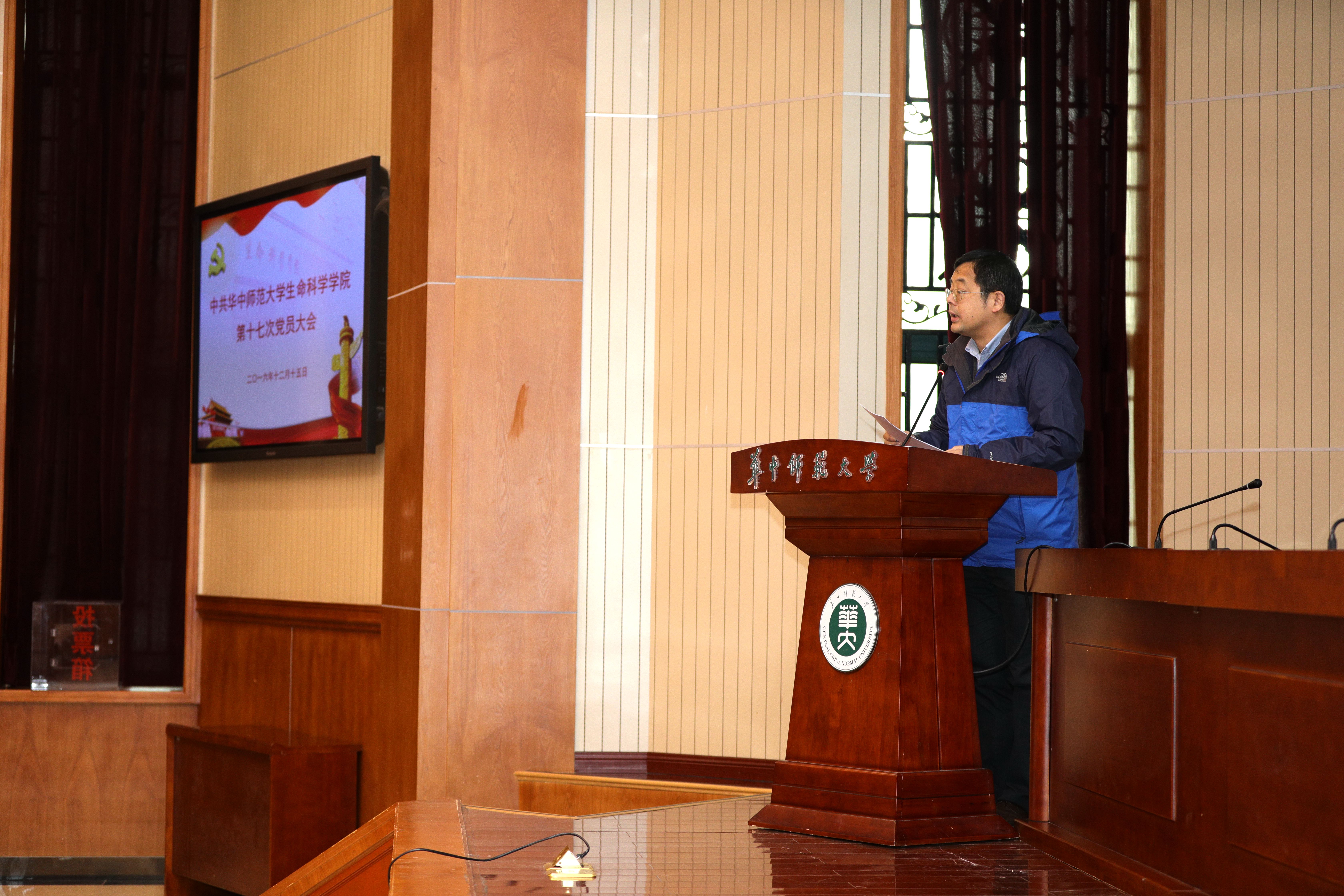 华大生科讯(通讯/朱家华 黄艳青 摄影/周权 康晨 苏恒霞)12月15日,中共华中师范大学生命科学学院第十七次党员大会在科学会堂一楼报告厅隆重召开。会议总结了生科院第十六届党委工作,选举产生了学院第十七届党委委员。学院教工党员、离退休党员及学生中的正式党员参加会议,预备党员列席会议。生科院第十六届党委委员、院长邱保胜同志主持会议。