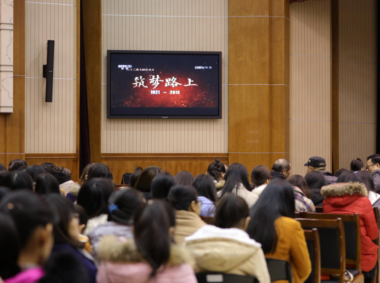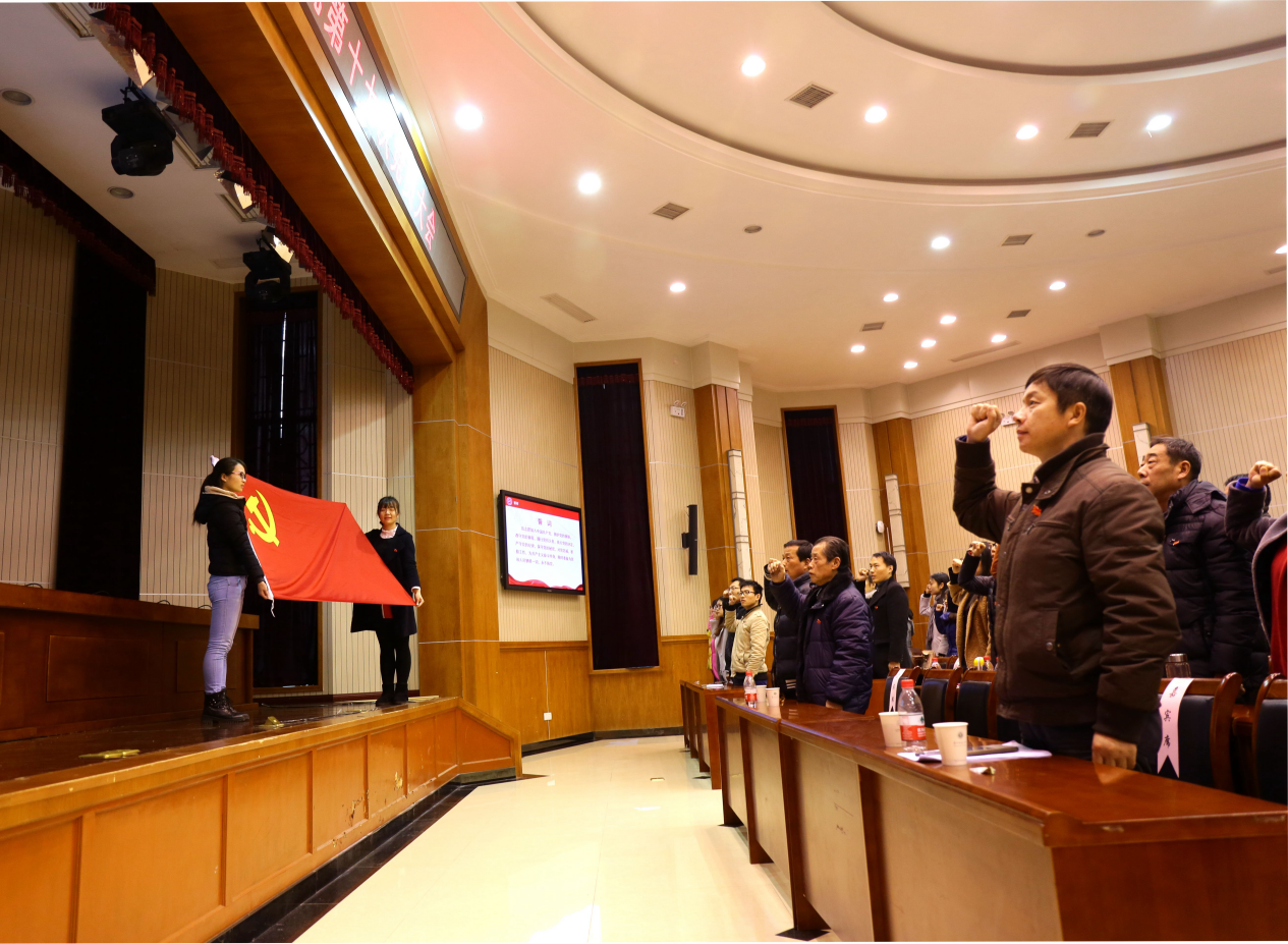 为了贯彻落实全面从严治党,不忘初心,继续前进,大会为每位党员配发党徽,并组织全体党员观看了纪录片《筑梦路上》,现场重温入党誓词。在《国际歌》雄壮的旋律中,大会顺利闭幕。