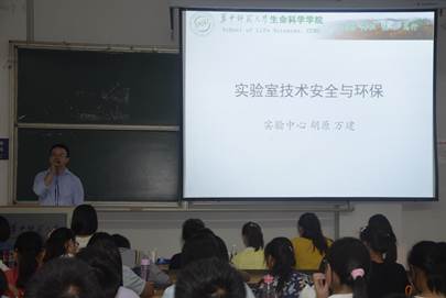 华大生科讯(记者团 冉炜平 徐三艳)9月27日晚,生科院实验室安全系列活动之“实验室技术安全与环保”讲座在九号楼9301报告厅举行。本次讲座由胡原和万建老师负责组织,生科院2016级本科全体新生参与了此次讲座。