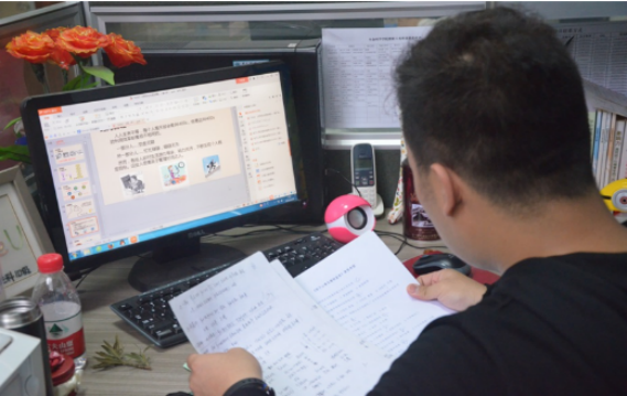 第一项工作是备课,由于时间紧迫,唐老师只能将预先做好的幻灯片迅速地浏览几次,熟悉讲课内容。七点五十三分,备课完毕的唐老师匆匆离开了办公室赶赴八号楼。