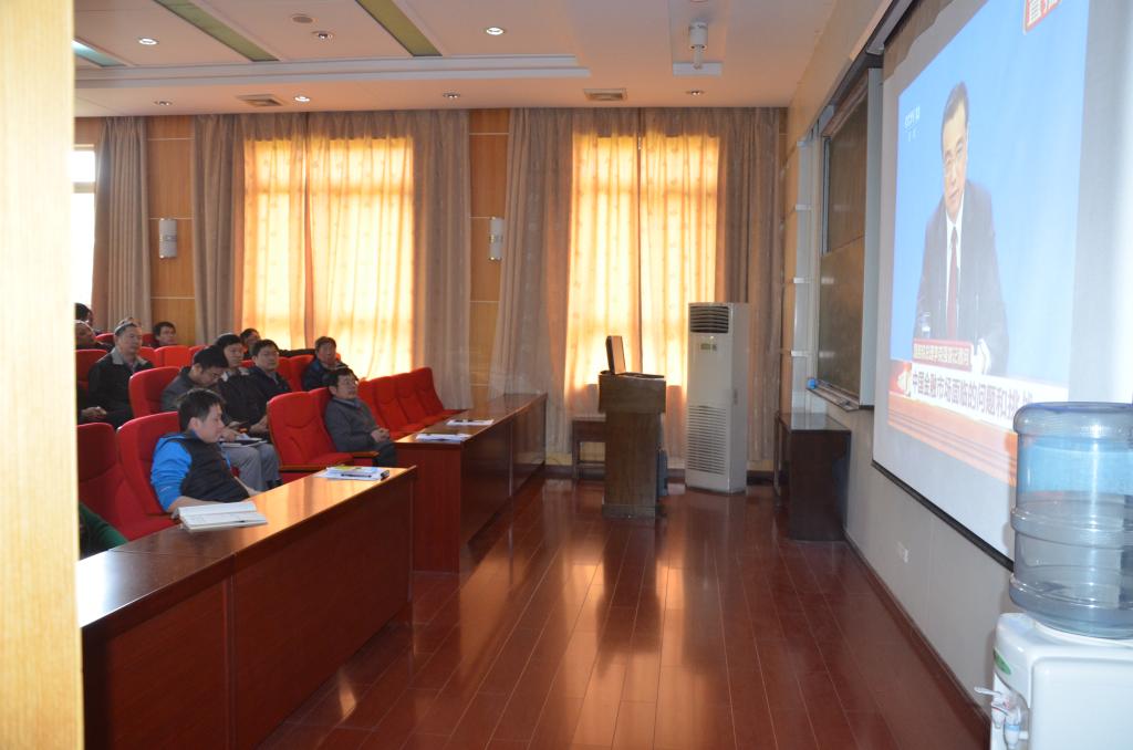 会议最后,组织观看了国务院总理李克强在今年“两会”期间答中外记者问的视频,对于中外记者提出的金融问题、简政放权、养老金发放、医保联网、两岸关系、新经济、中俄经贸关系、政务公开等问题,李克强总理一一回答,并联系具体问题进行剖析,对关系民生的重大问题作出了承诺,其中不乏对尖锐问题的直面探讨。整个会场秩序井然,处处洋溢着浓厚的学习氛围。