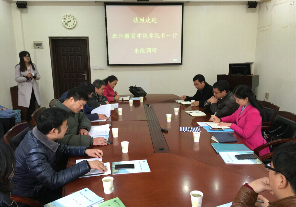华大生科讯 2月26日上午,教师教育学院副院长李建华一行到我院调研。教学办公室组织了调研会,院长邱保胜,副院长吴华,副书记金新利,上届副院长王玉凤,学科教学论教研室全体老师及相关人员参加了调研会。