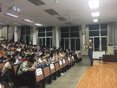 华大生科讯(通讯员 吴佳艳)2017年9月24日晚,生科院16级晚点名在7202教室展开。此次晚点名有幸邀请到了华中师范大学心理健康教育中心讲师余海军为同学们带来一场题为“爱情话你知”的讲座。晚点名由16级团总支书记储成程主持。