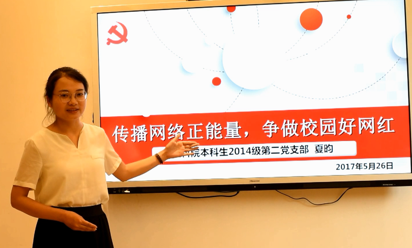 第二党支部书记夏昀同志的专题党课“传播网络正能量,争做校园好网红”紧追时下潮流,以互联网时代信息技术快速发展导致“网红”的产生为出发点,经过辩证的分析指出,党员同志要做正能量的传播者,做新时代的高校“网红”,“网”是途径,“红”是关键,心是“红”的,人也是“红”的。立意独特、内涵丰富,被评为“最吸引人的好党课”。