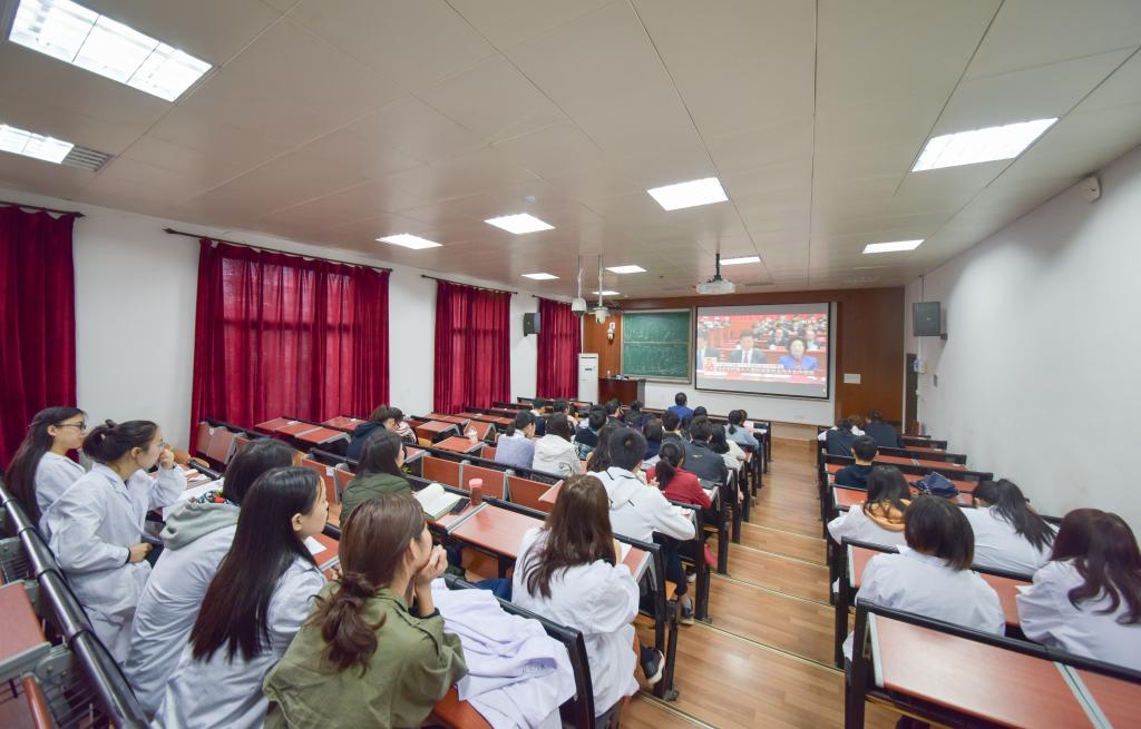 华大生科讯(通讯员 王棣)10月18日上午9时,中国共产党第十九次全国代表大会在北京人民大会堂隆重开幕。我院领导班子成员邱玉华、邱保胜、吴华、谢波、万翠红、金新利及其余教职工与学生于5301、5401、学术沙龙集中收看开幕式盛况,认真聆听习近平总书记代表党的十八大中央委员会向党的第十九次全国代表大会所作的工作报告。