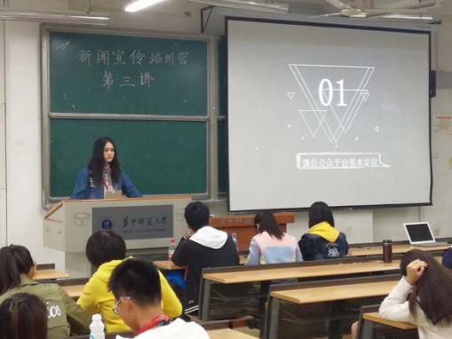 梁文杰向学员们介绍了微信公众平台的日常运营管理。首先,她以“什么是微信公众平台的基本定位”引出了培训内容她表示,微信公众号应以内容取胜,而不是简单的图文堆砌,并强调其主动性。微信公众号应准确定位,明晰受众,在栏目的设置上要不断创新,富有生科特色。介绍结束后,梁文杰以生动活泼的语言,介绍了微信公众号的日常工作:“搞事情”即做线上、线下活动以吸引粉丝关注;“会卖萌”即增强与粉丝的互动。她也对公众号日常运营模式提出了五点要求:体现新意识、把握热点、叙述完整;叙述文字严谨;富有文采等。