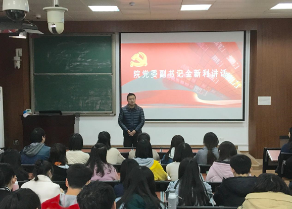 本次动员大会由路雨老师担任主持。首先,院党委副书记金新利强调了本期培训班的重要性,并对学员们提出一些要求与期望。金书记指出,在座的各位预备党员需要明确预备党员培训班与入党积极分子培训班的区别,并找好自身的角色定位,严格要求自我,力争上游。同时,金书记还建议,大家应当多多关注、了解并积极学习两会相关内容,深入钻研党的理论知识,提高自身党性修养。“动员大会的时间有限,但学习的时间和欲望无限”,关注社会动态、心系祖国是对党员的根本要求,学习的脚步不停,人才会不断进步。金书记的一番话恳切而又意义深刻,语毕,大家都报以了热烈的掌声。