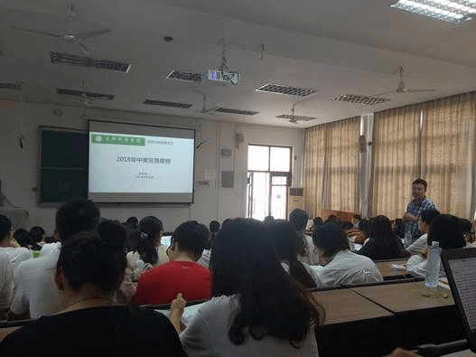 首先,金书记简要说明了该课程的课时安排与考核方式,然后引出本次形势与政策课程主题——2018年中美贸易摩擦。接着,由我院预备党员赵英杰带领大家回顾中美贸易摩擦过程中的一些重要事件,针对具体情况介绍梳理,为接下来课程的开展做出铺垫。
