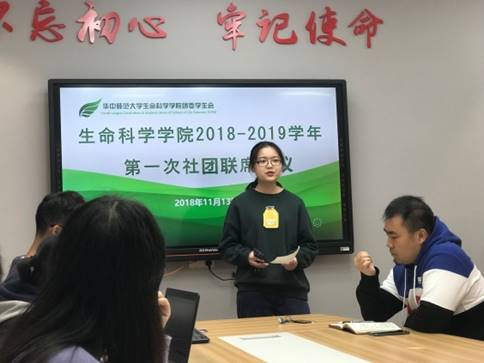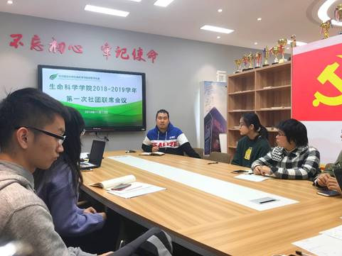 华大生科讯(通讯员 王一凡 李林芳)11月13日中午,生命科学学院2018-2019学年第一次社团联席会议于5411顺利召开。院团委书记唐佳琦老师、各协会和负责人、团委学生会秘书处成员等参加了此次会议。此次会议由院团委学生会副主席陈杰主持。