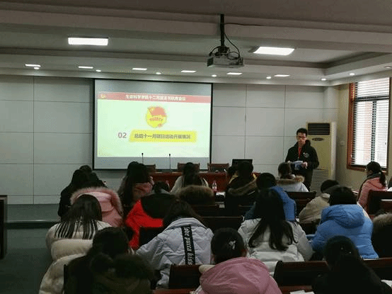 华大生科讯(通讯员 李焱 吴微微 贾宇)12月11日中午,生命科学学院十佳团支书评选答辩暨十二月团支书联席会议于科学会堂201会议室顺利召开。院团委副书记储成程、贾宇,院学生会副主席陈杰,院团委理论学习部部长夏玉琴、宣传部部长吴微微,各年级团总支书记以及各支部书记、副书记参加了此次会议。此次会议由院团委组织部部长庞康明主持。