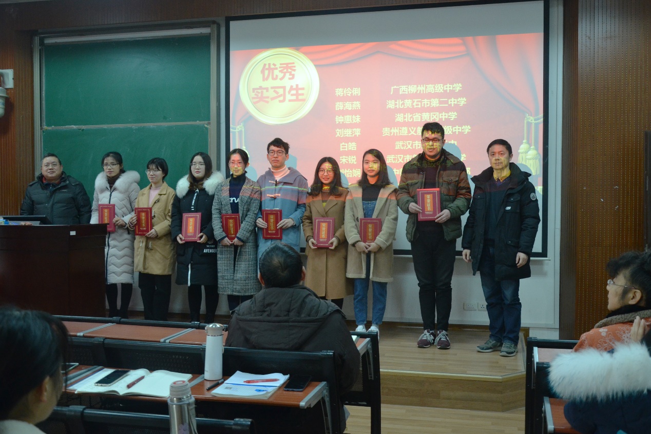 随后,4个实习小组的代表做了各具特色的实习总结交流汇报。华中师大一附中实习生代表刘怡娴从学校概况、主要工作和实习心得等方面,展示了在听课观摩方面的更上层楼、在教学设计和实施方面的蜕变和对班主任工作细琐繁杂的体验,并提出在专业知识、学科教学上的宝贵建议。贵州遵义航天高级中学代表刘继萍通过对公众号、实习工作、班级管理以及与学生和家长沟通等方面的介绍,展现了细腻耐心的专业素养。湖北襄阳四中代表、武汉四十九中代表展示了不一样的实习风采,从生物教育的特点出发,分别介绍了实习过程中开展的特色教学活动,她们对学情的深入体悟、活动设计与组织的逐步成熟等方面做了详细而生动的交流汇报。
