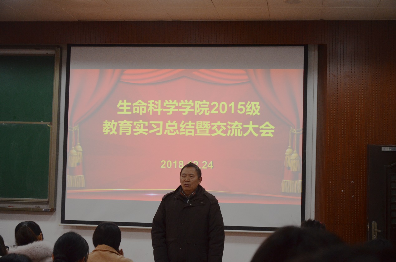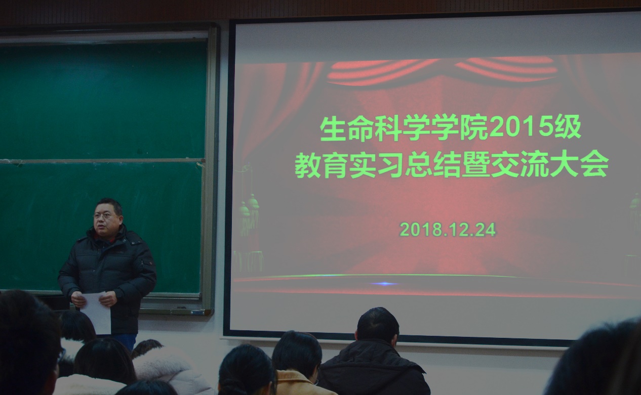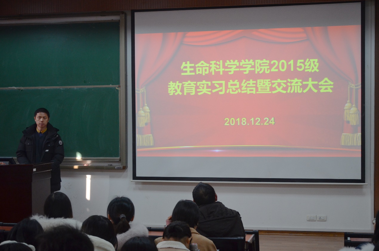 华大生科讯(通讯员 洪艺珊 刘俞含)12月24日上午,生命科学学院2015级教育实习总结大会在5401报告厅举行,院党委书记邱玉华、负责学院教学的刘德立教授等3位实习指导老师列席参会。本次大会由刘家武老师主持。