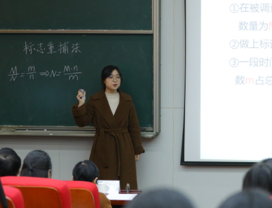 比赛现场,来自我院不同年级的十名师范生选手各显风采:王子媛巧用仿真模型,生动形象地讲解了种群在不同环境的“S”型和“J”型增长特点;薛钮文和刘怡娴以植物组织培养虚拟仿真实验为依据,引导大家身临其境地学习了从一片花瓣培养出一棵植株的神奇过程;杨紫瑞通过 “标志重捕法”的仿真实验,带大家体验了一把野外实习动物调查。选手们从容不迫的台风、生动形象的肢体语言、独具个性的教学风格,不仅赢得了嘉宾评委的高度认可与赞扬,也获得了现场观众的连连喝彩。