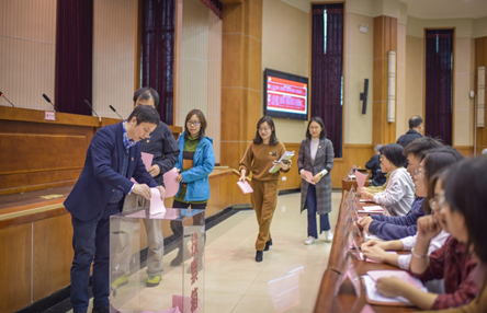 会议第二项,由院党委委员、院长邱保胜同志宣读选举办法和学校党委分配给本单位的代表结构组成。接着,由余璇同志代表院党委提名工作人员名单,包括总监票人李兵同志,监票人林磊、万建同志,计票人秦丽玮、王棣同志,并通过现场举手表决全票通过了该工作人员名单。