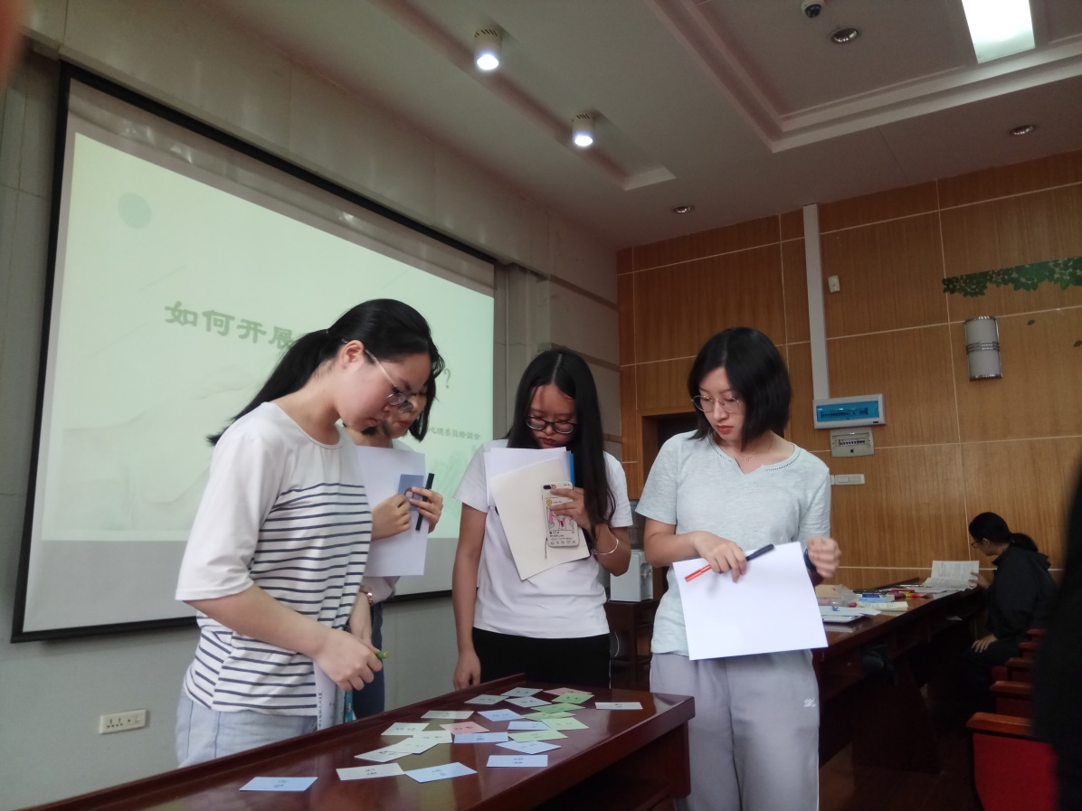 接下来,余璇老师询问了大家举办此次心理班会存在的问题并一一进行解答。介绍了心理班会的一般活动程序:集合、暖场、分组、团建和最后的分享体验。结合本次培训会的开展形式和“学习金字塔”启示大家在组织一场心理班会时讨论、实践与教授给他人更能提高心理班会主题传达的效率。