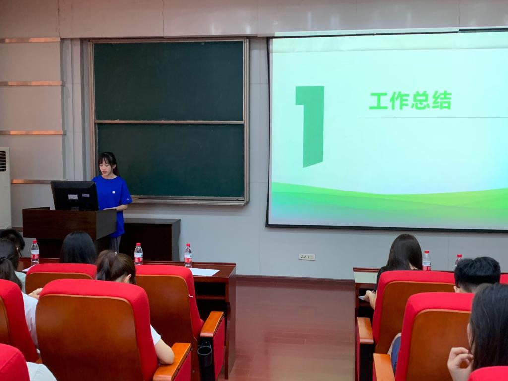 生活权益部部长韩格格介绍了过去一年的工作情况和举办的树叶拼图、水果拼盘等特色活动,传达了生活权益部的初心,一心一意为生活、全心全意为大家。最后,对外联络部部长耿可欣对部门工作进行了总结,外联“转型”的一年,她也希望外联能创新开拓,内引外联,稳中求进,助力团学。