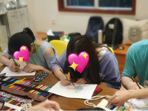 在制作完后,大家轮流分享自己的构图思路,作画时的心理感受,其中有对自己的现状的阐述,也有对美好生活和未来的期待。同学们也发现,当沉浸在自己的世界里,和心中的“曼陀罗”对话时,外界的烦恼和压力随之减小,身心状态更加轻松,能够更有力量地处理当下的烦恼和问题。