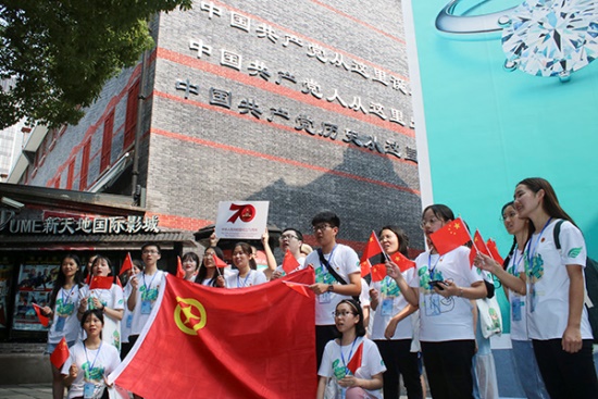 微团课结束后,全体队员手举国旗合唱歌曲《我和我的祖国》,歌颂祖国的大好河山,表达了对建国70周年的美好祝愿。中共一大会址旁的街道都悠扬着这首赞歌。