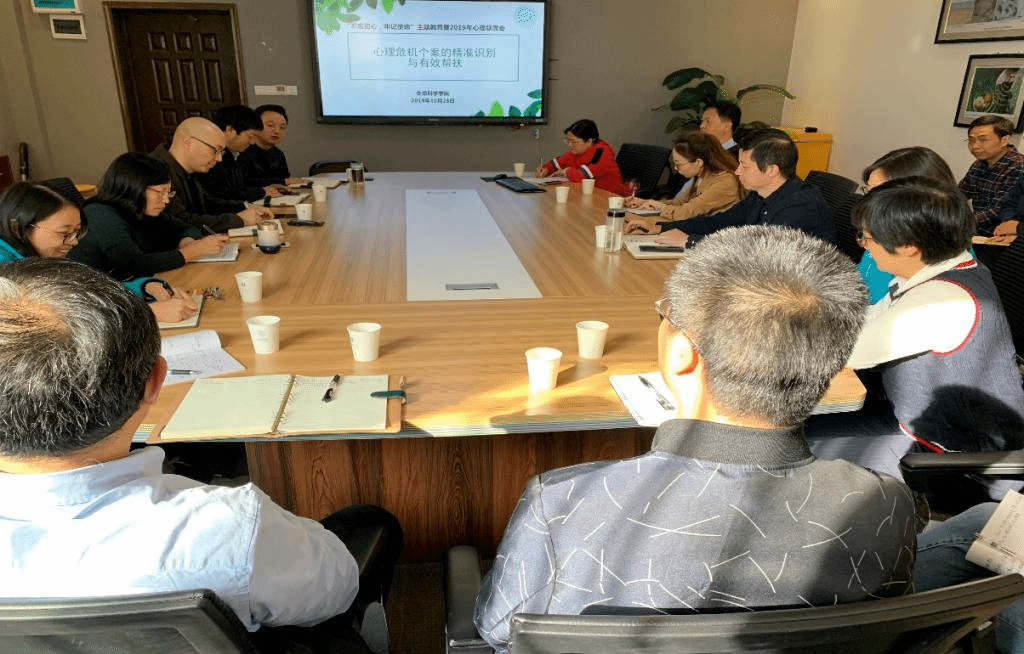 华大生科讯(通讯员 邓淑文)在深入推进“不忘初心、牢记使命”主题教育关键期,为进一步加强和改进大学生心理健康教育工作,10月28日下午3:00,我院召开2019年生命科学学院心理联席会议,通过对心理危机个案的精准识别和有效帮扶,“以心育人”,培养德智体美劳全面发展的社会主义建设者和接班人。我校党委研究生工作部黎俊玲副部长、心理健康教育中心余海军老师出席本次活动并进行指导,我院班子成员、各研究组组长、班主任、各年级辅导员、院心理联络员及党务干事参会。
