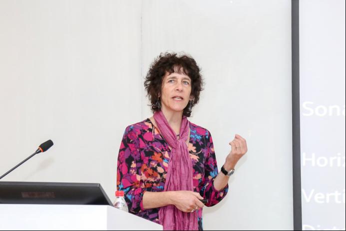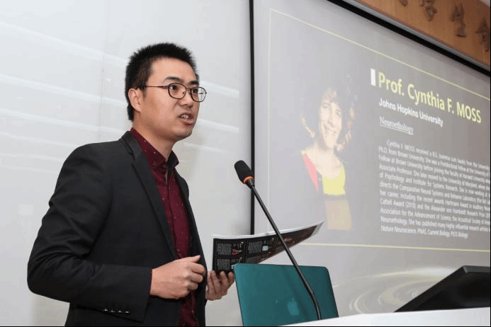 随后上午的几位主讲人开始学术报告。首先是约翰霍普金斯大学Cynthia F. MOSS教授的40分钟的精彩报告,题为《蝙蝠声纳对目标距离的神经编码》(Neural codes for representing target distance in bat sonar);随后,中科院病毒所周鹏教授做题为《致命病毒与蝙蝠的共存:暗示蝙蝠与众不同的免疫系统》(Coexistence of bats and deadly viruses: implication of a different defense system)的报告;之后,武汉大学赵华斌教授做题为《追踪蝙蝠丰富食性的分子印迹》(Tracing molecular signatures of dietary diversification in bats)的报告。