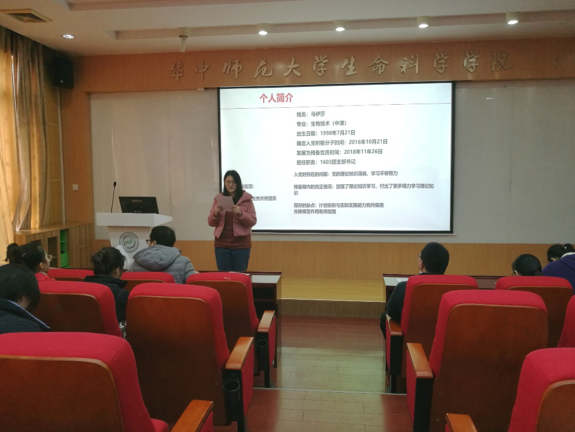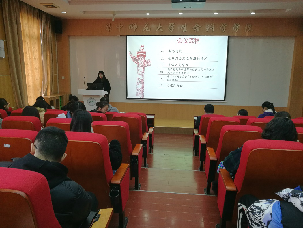 华大生科讯(通讯员 米易琴)12月24日中午,生科院本科生第四党支部12月支部大会及党日活动在生科院5301顺利开展,会议主要内容为讨论马伊莎、王昳衡、李佰伦、王智凝、吕柯、阮子伦等6位同志转为中共正式党员,党日活动主题为学习《习近平关于“不忘初心、牢记使命”论述摘编》。支部书记袁颖敏、组织委员俞乐宁、宣传委员赵英杰、纪检委员田欣娜及本支部其他成员参加了此次会议。本次会议由袁颖敏主持。