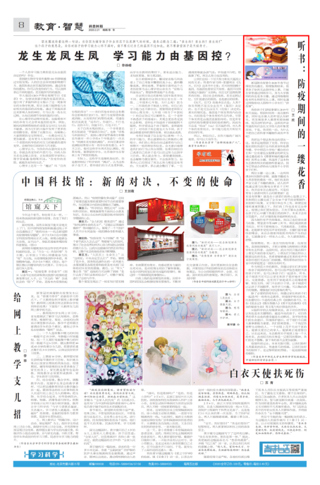 新冠肺炎疫情令2020年春节过得忧伤而漫长。即便假期结束,很多孩子依然无法到学校上课,只能在家里通过网络学习。身为大学教师的我也变身主播,通过网络继续给本科生和研究生上课,同时也通过网络给幼儿园和中小学生们“讲故事”。
