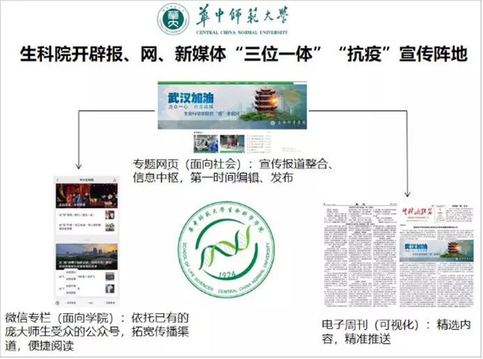 每一名生科人都不被感染。学院搭建起了“三位一体”防疫平台,宣传报道与抗击疫情并肩作战,学院官网、官微和《生科晚点名》电子报刊联合发声,打造了一个基层党组织强有力“三位一体”的防疫阵地,及时回应师生需求,为师生带来学院全面的战疫情报,形成了全院上下共同战疫的强大氛围。目前,我院1521位师生员工暂未发现感染新型冠状病毒。