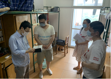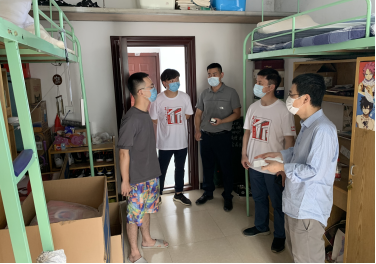 华大生科讯(通讯员 王棣)根据学校工作部署,6月17日是毕业生将分批次、分类别有序自愿返校第一天。当日下午,副校长李鸿飞、学校办公室陈晓宇来到东区16栋学生宿舍看望我院第一批本科返校毕业生。我院党委书记邱玉华、副书记刘阳、毕业年级辅导员余璇陪同走访。