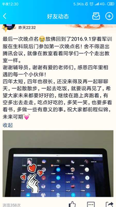 (图为毕业年级研究生发于朋友圈的离别感言)