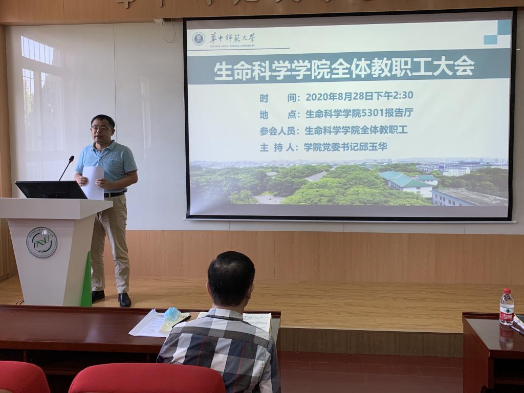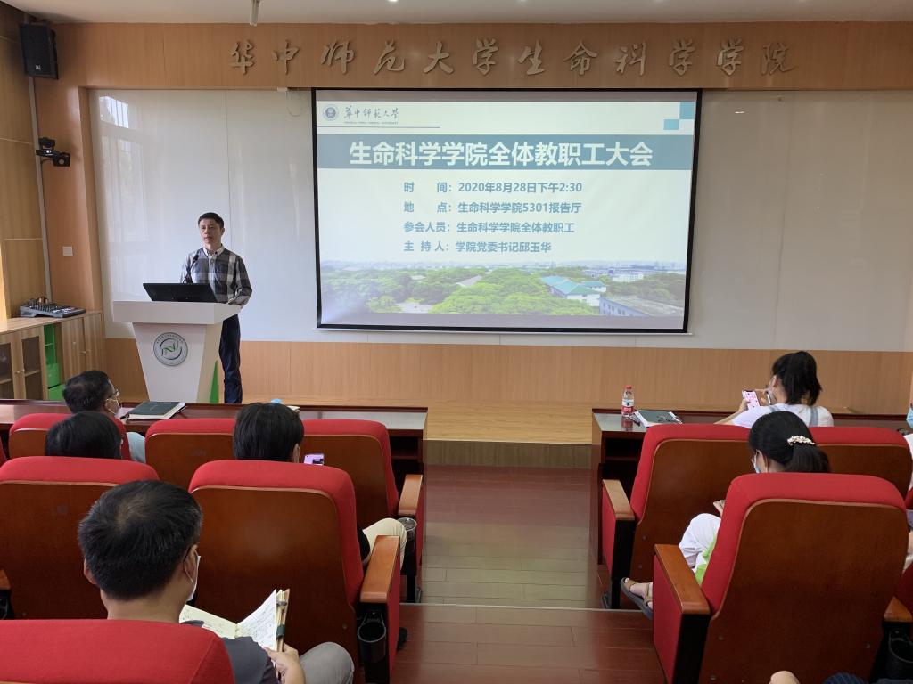 华大生科讯(通讯员:王瑞)8月28日下午,我院在5301报告厅召开新学期第一次全体教职工大会,对暑期工作进行回顾总结并围绕新学期学校重点工作进行安排部署。我院全体教职工按时与会,会议由院党委书记邱玉华主持。