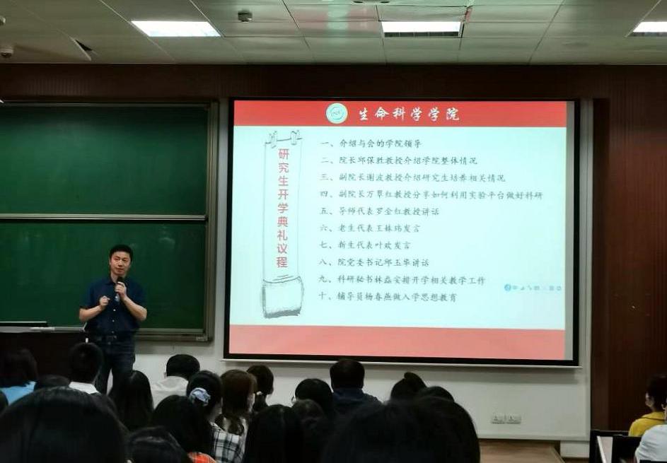 华研生科讯(通讯员 闫慧杰 毛莲凤 刘晓娟 刘艳瑞)9月18日下午2:30,生命科学学院2020年研究生开学典礼暨新生入学教育大会于生科院5401报告厅顺利举行。此次典礼由院党委副书记刘阳主持,院党委书记邱玉华、院长邱保胜、副院长谢波、万翠红、导师代表罗金红教授、科研秘书林磊和辅导员杨春燕等学院领导老师出席典礼并发表讲话,全体2020级硕、博士研究生到会参加。