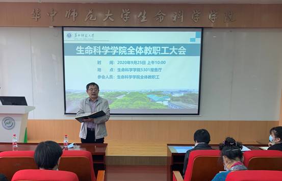华大生科讯(通讯员:王瑞、蔡靖琳)9月25日上午,我院在5301报告厅召开全体教职工大会,对生物科学师范专业三级认证验收工作召开动员培训大会,并对验收重点工作进行安排部署。我院全体教职工按时与会,会议由院长邱保胜主持。