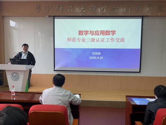 本次会议邀请了数学与统计学学院副院长郑高峰对我院三级认证工作的开展进行经验分享交流。郑高峰对我院一直以来为专业认证工作所做的努力、创新给予高度的赞扬,他提出三级认证工作要立足统一思想、高度重视,全员参与、重点突破,全面准备、突出特色的总体要求,并简要介绍了认证理念、认证标准及认证流程。他强调,按照专业认证理念,培养目标和毕业要求的修订需要相关方共同参与,毕业要求要符合认证标准提出的“践行师德、学会教学、学会育人、学会发展”四个方面的要求,回答好“培养什么人”和“怎样培养人”的问题。同时也详细介绍了认证工作组的工作安排,分为自评报告、实践认证、毕业论文、实习材料审核、调查问卷、制度保障和设施资源保障,充分做到“以学生为中心、以产出为导向、持续质量改进”,充分理解“学生中心、产出导向,持续改进”的论证理念。分享结束后进行了交流与讨论,老师们一致认为师范专业认证是学院专业建设和提高人才培养质量的重要契机,要抓住机遇,提前谋划,积极开展。