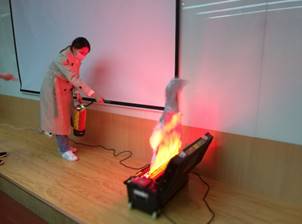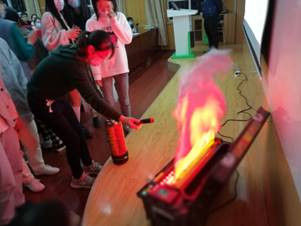 在学校保卫处和设备处的大力支持下,本次培训首次引用虚拟灭火器完成实验室消防安全培训。借助虚拟灭火器向学生讲解灭火器的使用规范以及注意事项,同时学生可模拟操作灭火器,提高学生兴趣与参与度,增强培训效果。现场学生热情高昂,积极体验虚拟灭火过程。