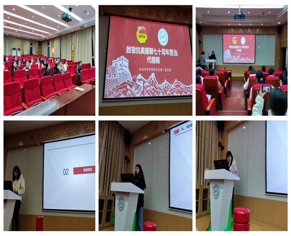 为纪念中国人民志愿军抗美援朝出国作战70周年,华中师范大学生命科学学院研究生团总支于2020年11月份组织开展了“致敬抗美援朝,争做时代新人”主题团日活动,各支部在团支部书记的带领下,以不同的形式,积极参与到此次活动中来。