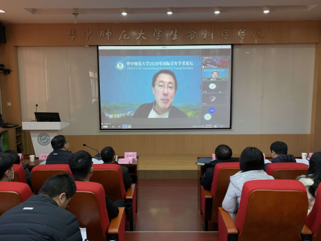 华大生科讯(通讯员 邓淑文、李林芳)12月30日上午,2020年华中师范大学国际青年学者论坛生命科学学院分论坛在我院5301报告厅举行,出席本次论坛的有副校长李鸿飞、院党委书记邱玉华、院长邱保胜及学院学术委员会成员、学院师生和参加论坛的青年学者。24位海内外优秀人才向学院师生进行了精彩的学术报告,通过线上线下相结合的方式共赴学术盛会。