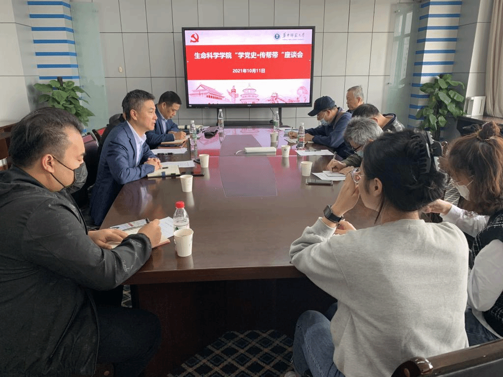 华大生科讯(通讯员:叶映彤、葛明睿)10月11日上午,我院“学党史·传帮带”活动座谈会在9号楼922会议室顺利举行。退休教师代表吴法清、陈其才、刘胜祥、刘德立,院党委书记郑宁、副书记刘阳、实验中心主任李兵、院团委书记唐佳琦、学院办公室副主任邓淑文和学生代表叶映彤、葛明睿参加会议。